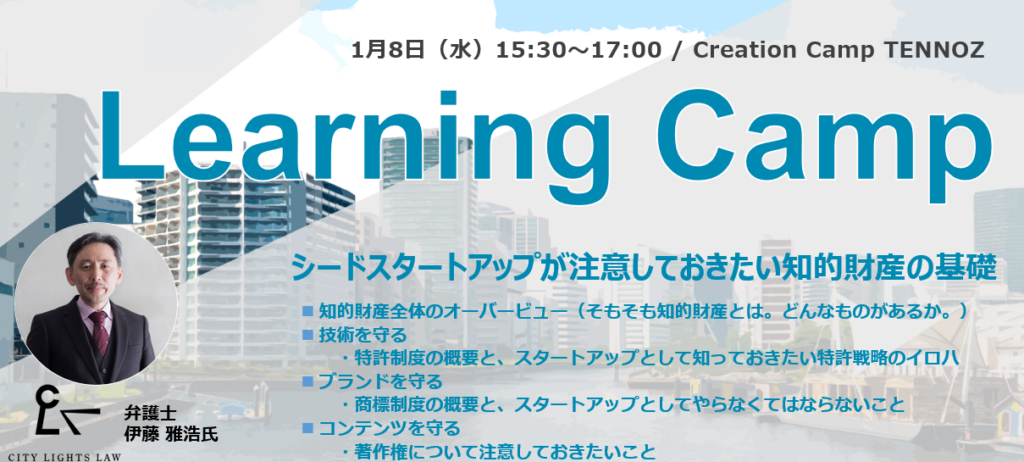【Learning Camp】「シード期スタートアップが注意しておきたい知的財産の基礎」