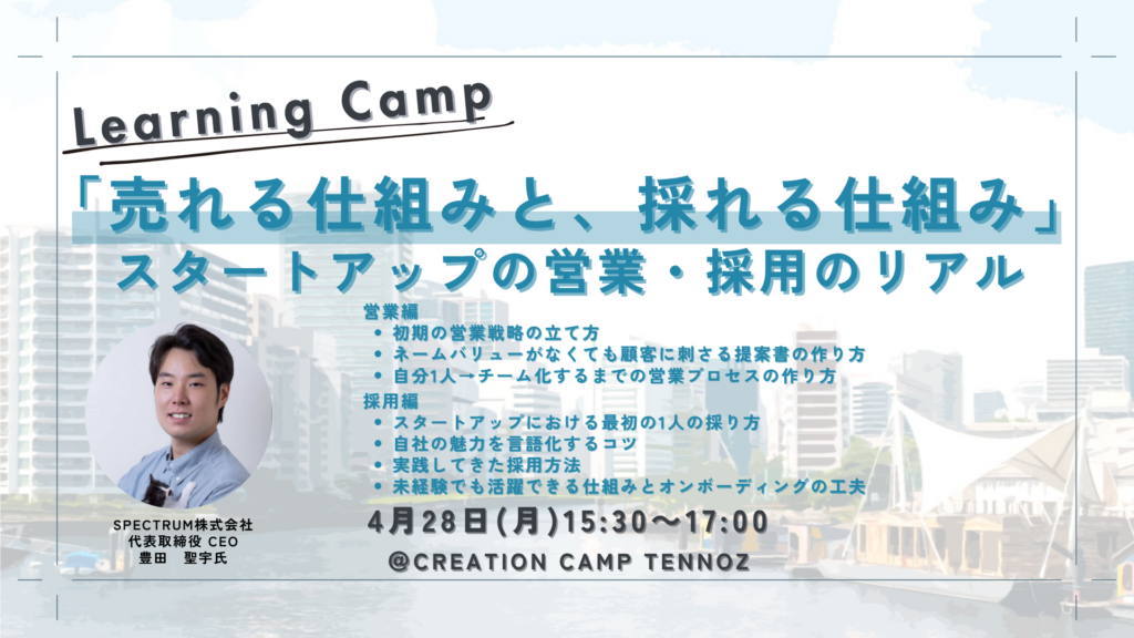【Learning Camp】「売れる仕組みと、採れる仕組み」スタートアップの営業・採用のリアル