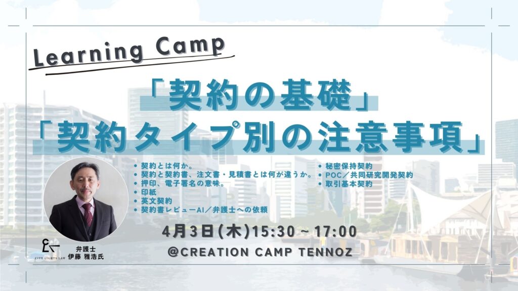 【Learning Camp】「契約の基礎」「契約タイプ別の注意事項」